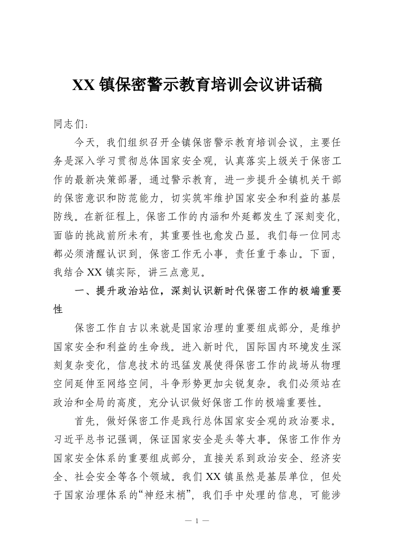 首页精选范文XX镇保密警示教育培训会议讲话稿