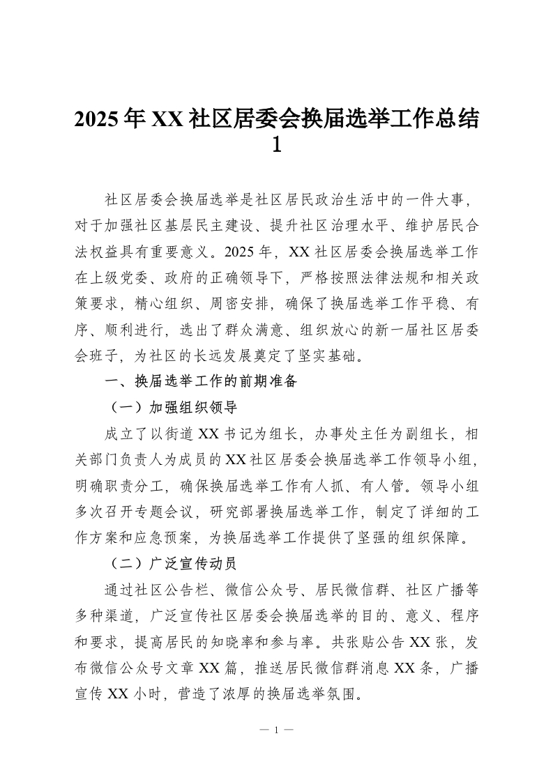 首页精选范文2025年XX社区居委会换届选举工作总结1