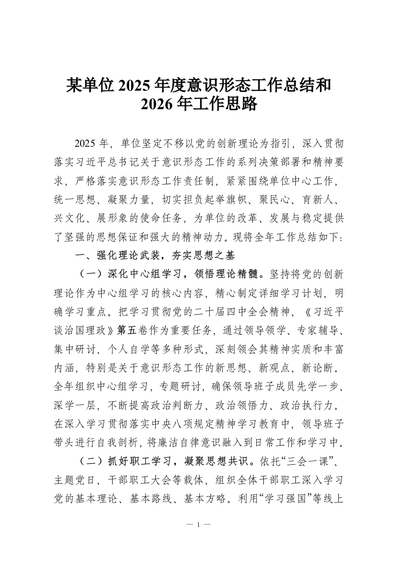 首页精选范文某单位2025年度意识形态工作总结和2026年工作思路