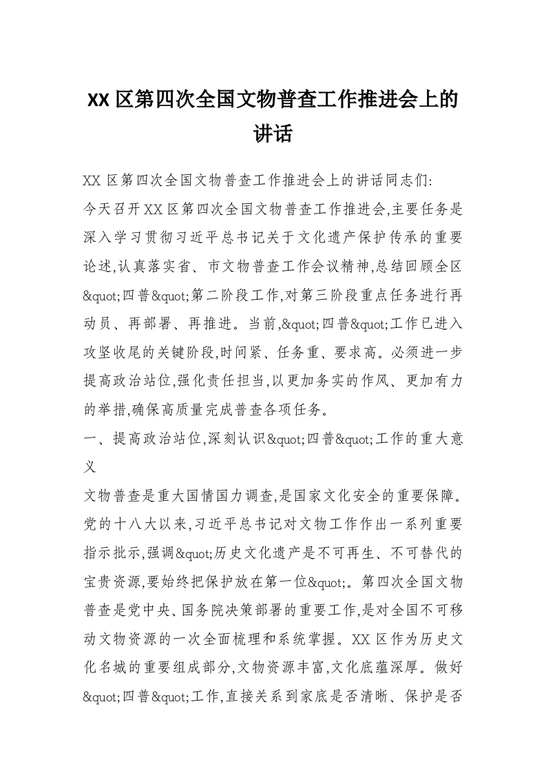 首页讲课讲稿XX区第四次全国文物普查工作推进会上的讲话