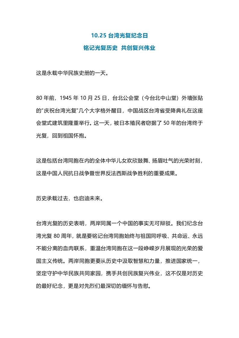 首页讲课讲稿2025台湾光复纪念日PPT铭记光复历史共创复兴伟业课件(讲稿)