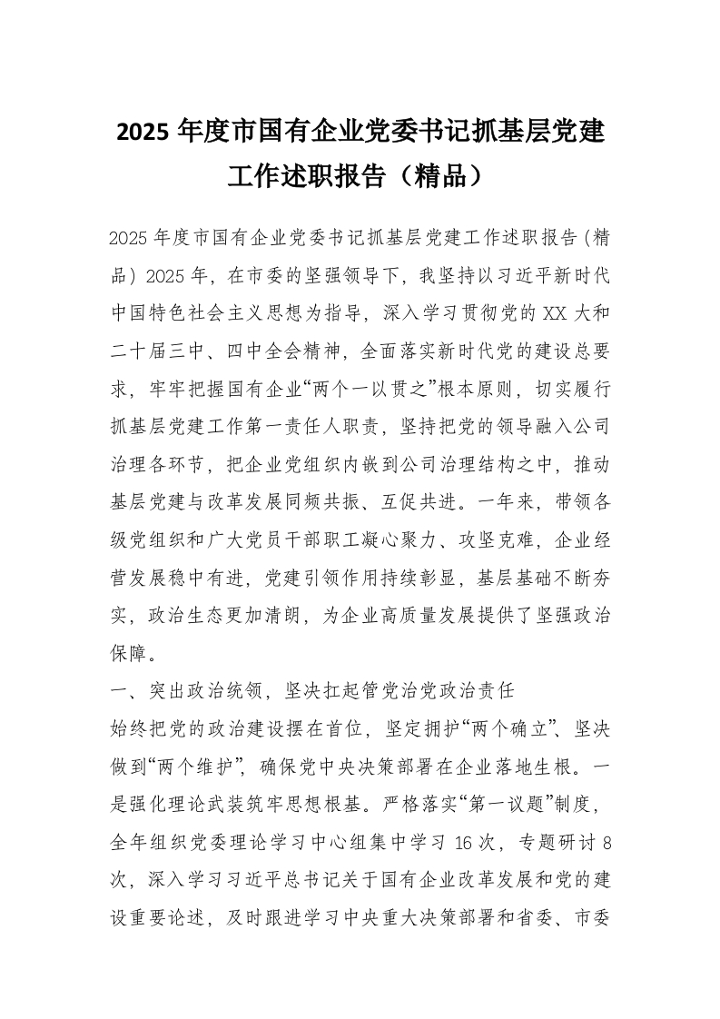2025年度市国有企业党委书记抓基层党建工作述职报告(精品)