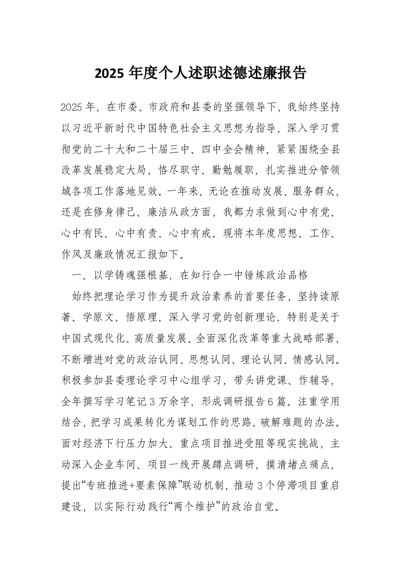 首页讲课讲稿2025年度个人述职述德述廉报告