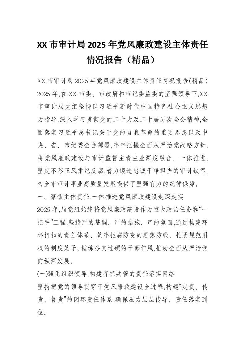 XX市审计局2025年党风廉政建设主体责任情况报告(精品)