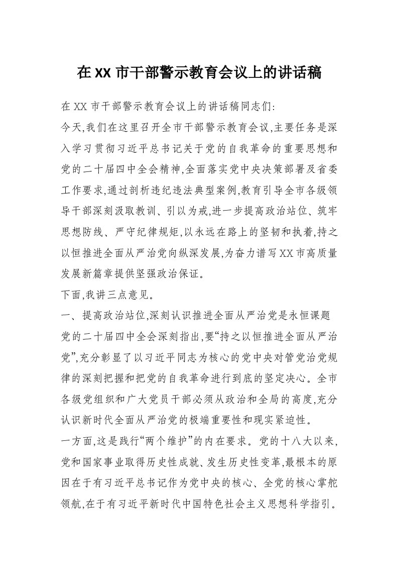 首页材料汇编在XX市干部警示教育会议上的讲话稿
