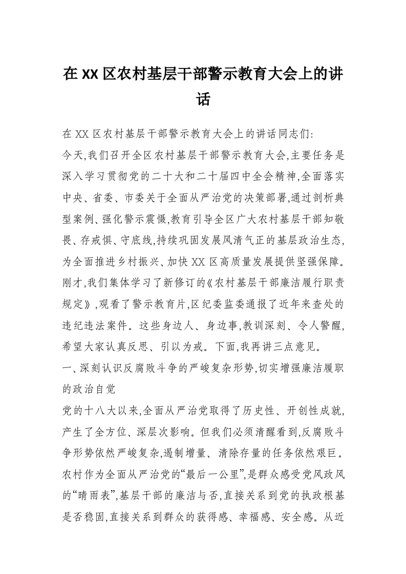 首页材料汇编在XX区农村基层干部警示教育大会上的讲话