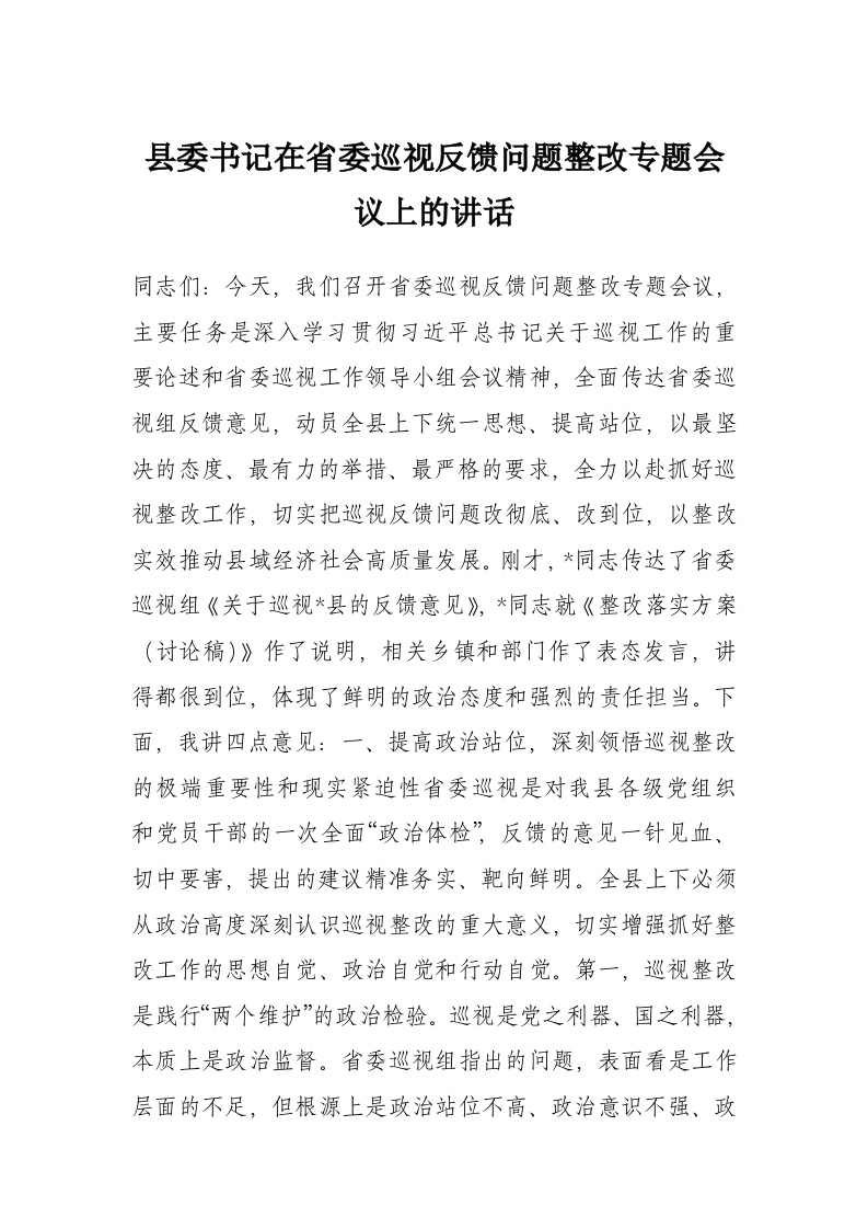 县委书记在省委巡视反馈问题整改专题会议上的讲话