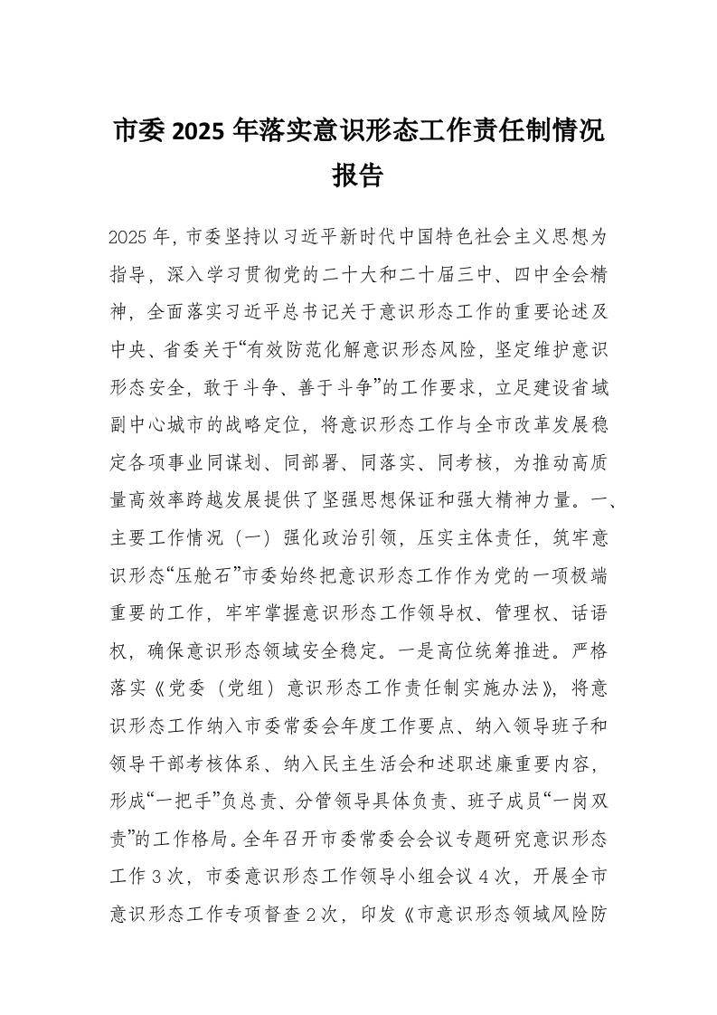 首页材料汇编市委2025年落实意识形态工作责任制情况报告