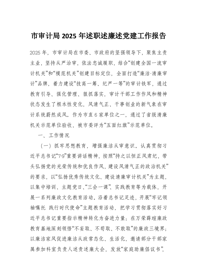 首页材料汇编市审计局2025年述职述廉述党建工作报告