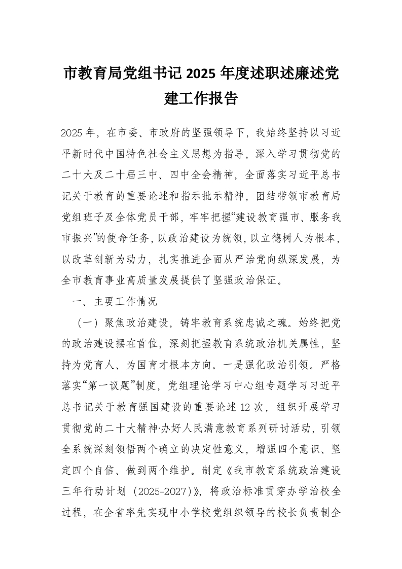 首页材料汇编市教育局党组书记2025年度述职述廉述党建工作报告