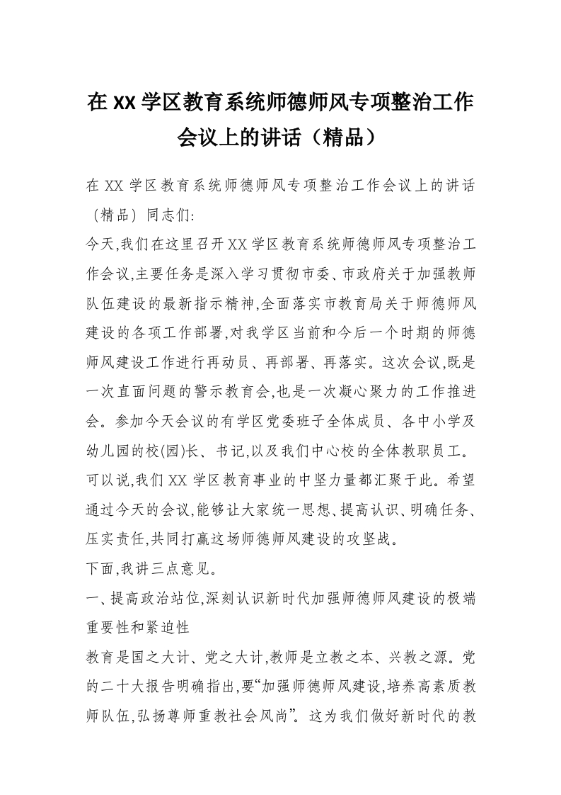 在XX学区教育系统师德师风专项整治工作会议上的讲话(精品)