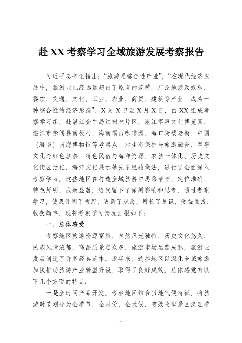 赴XX考察学习全域旅游发展考察报告