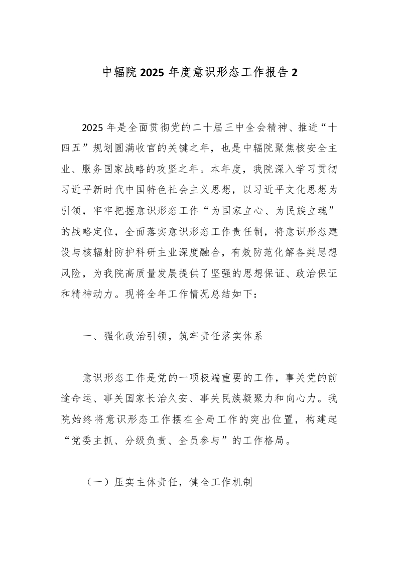 首页工作文档中辐院2025年度意识形态工作报告2_副本