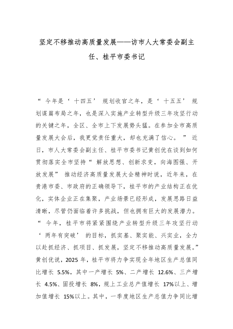 首页工作文档坚定不移推动高质量发展——访市人大常委会副主任、桂平市委书记_副本