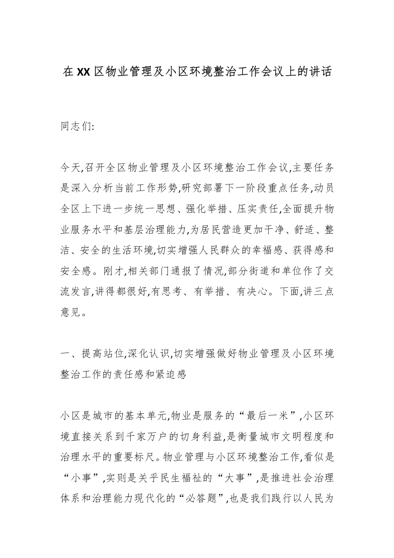 在XX区物业管理及小区环境整治工作会议上的讲话_副本