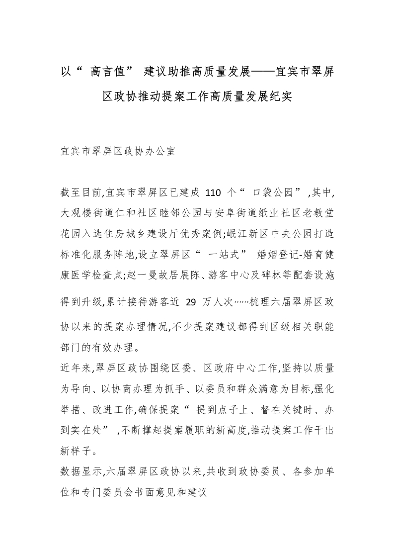 以“ 高言值” 建议助推高质量发展——宜宾市翠屏区政协推动提案工作高质量发展纪实_副本