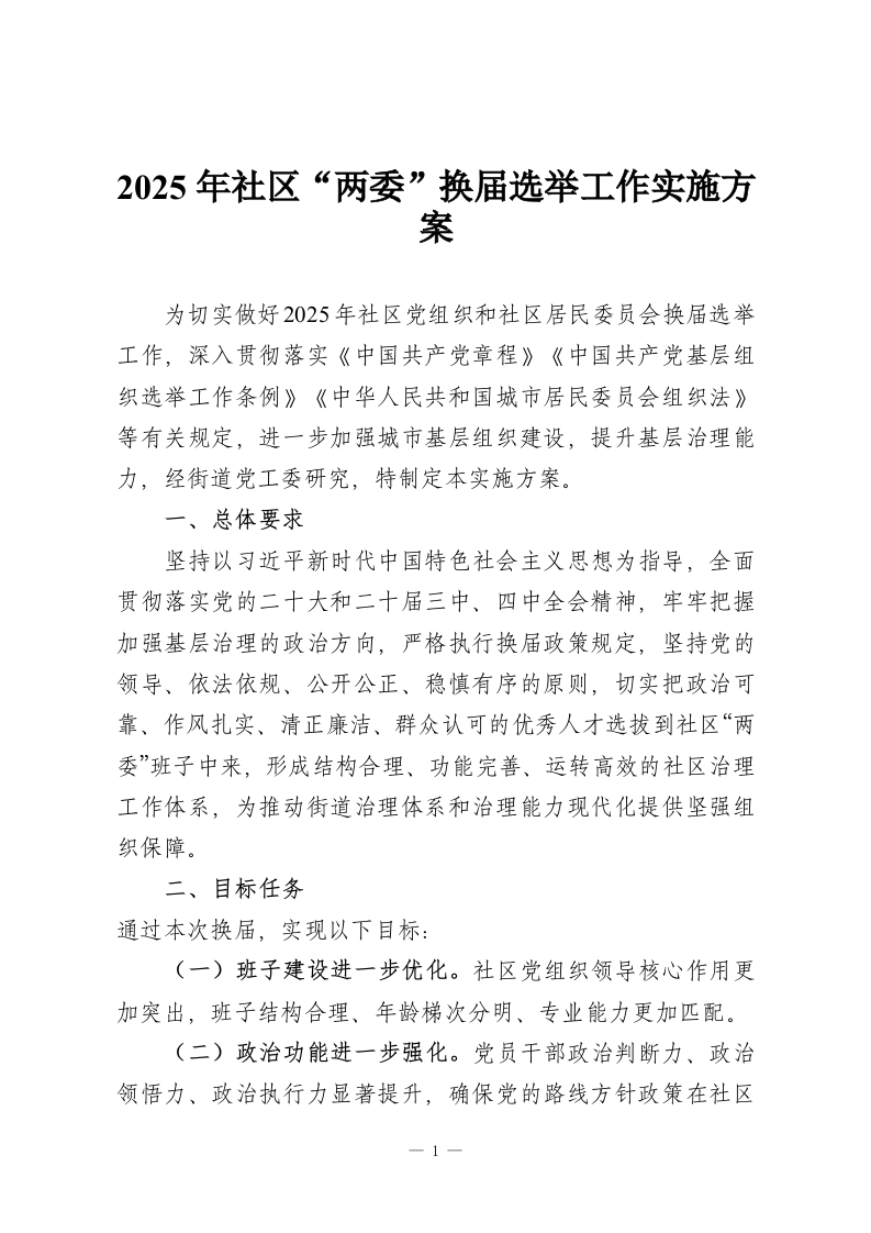 首页工作文档2025年社区“两委”换届选举工作实施方案