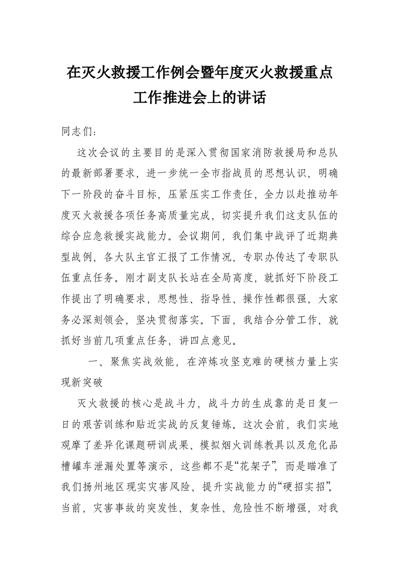 在灭火救援工作例会暨年度灭火救援重点工作推进会上的讲话