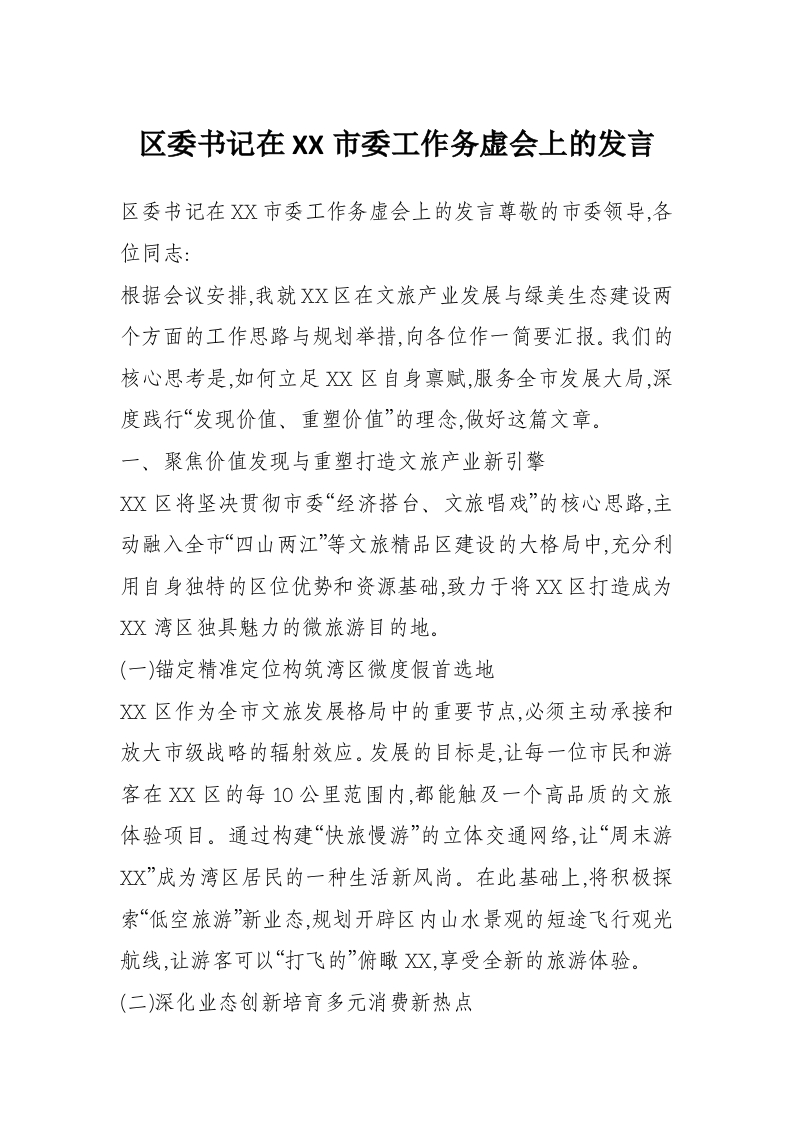 首页学习提升区委书记在XX市委工作务虚会上的发言
