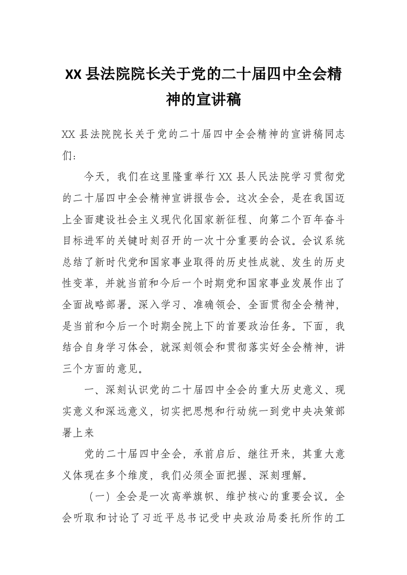 首页材料汇编XX县法院院长关于党的二十届四中***精神的宣讲稿