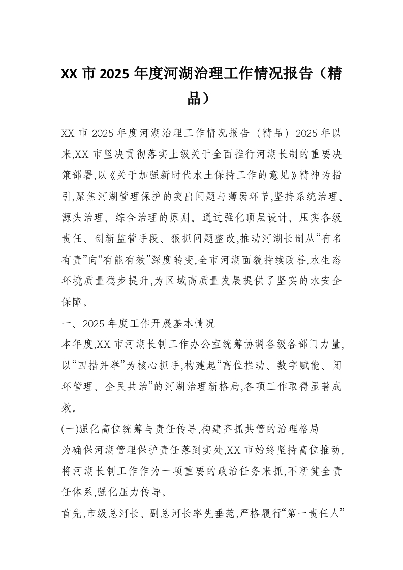 首页材料汇编XX市2025年度河湖治理工作情况报告(精品)