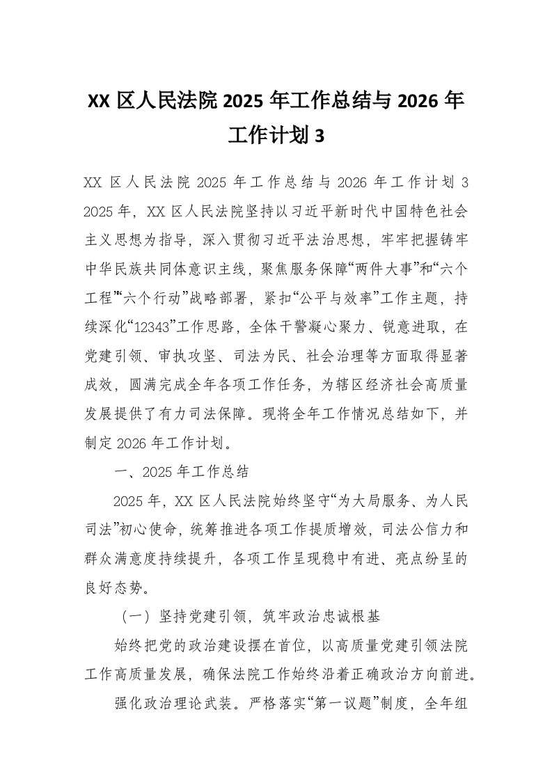 XX区人民法院2025年工作总结与2026年工作计划3