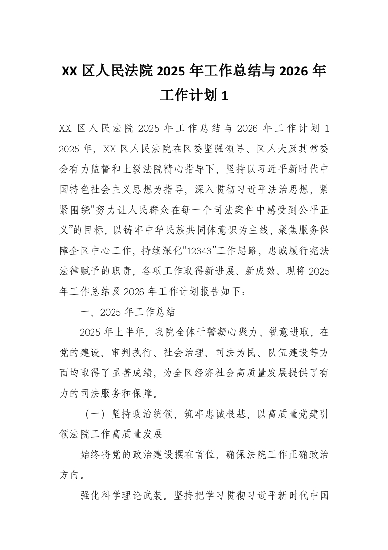 XX区人民法院2025年工作总结与2026年工作计划1