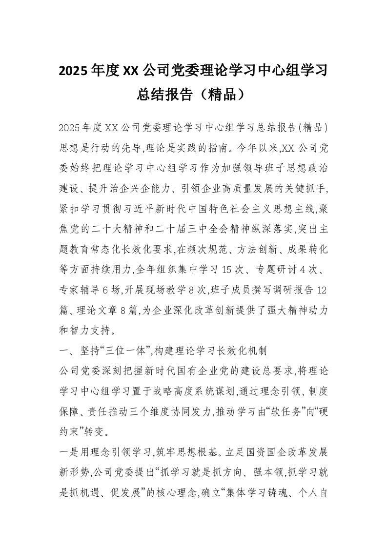 2025年度XX公司党委理论学习中心组学习总结报告(精品)