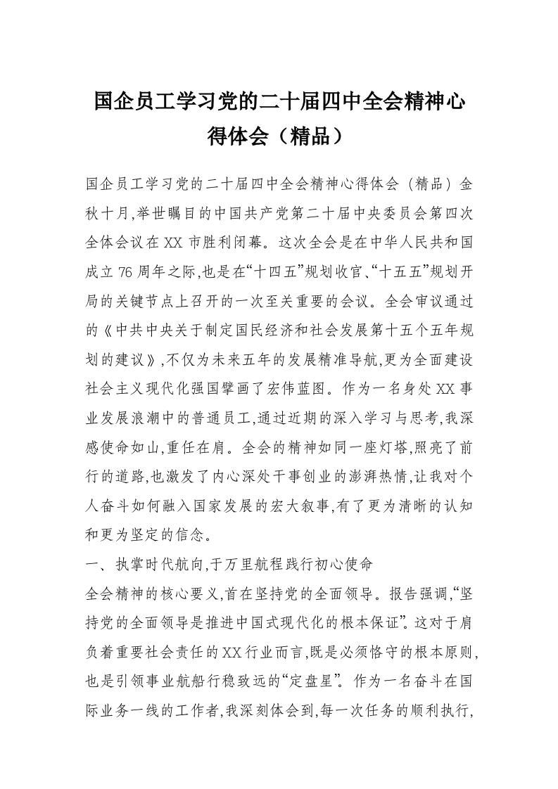 国企员工学习党的二十届四中***精神心得体会(精品)