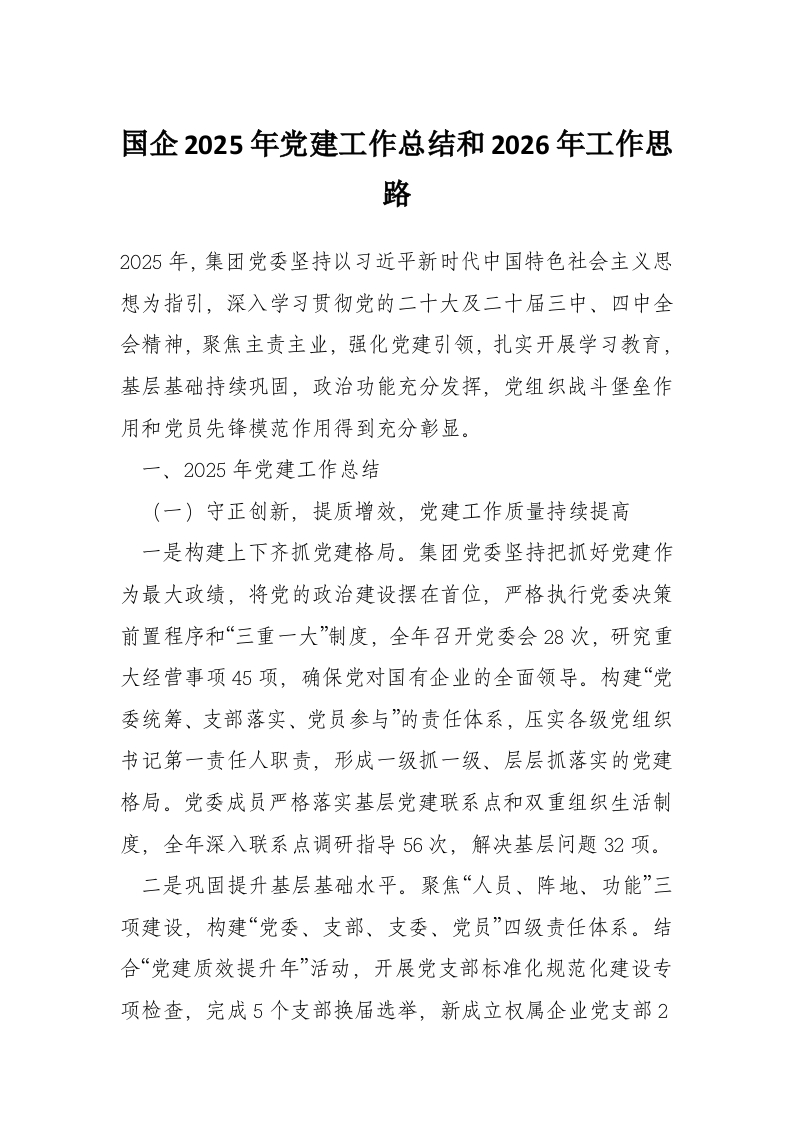 国企2025年党建工作总结和2026年工作思路