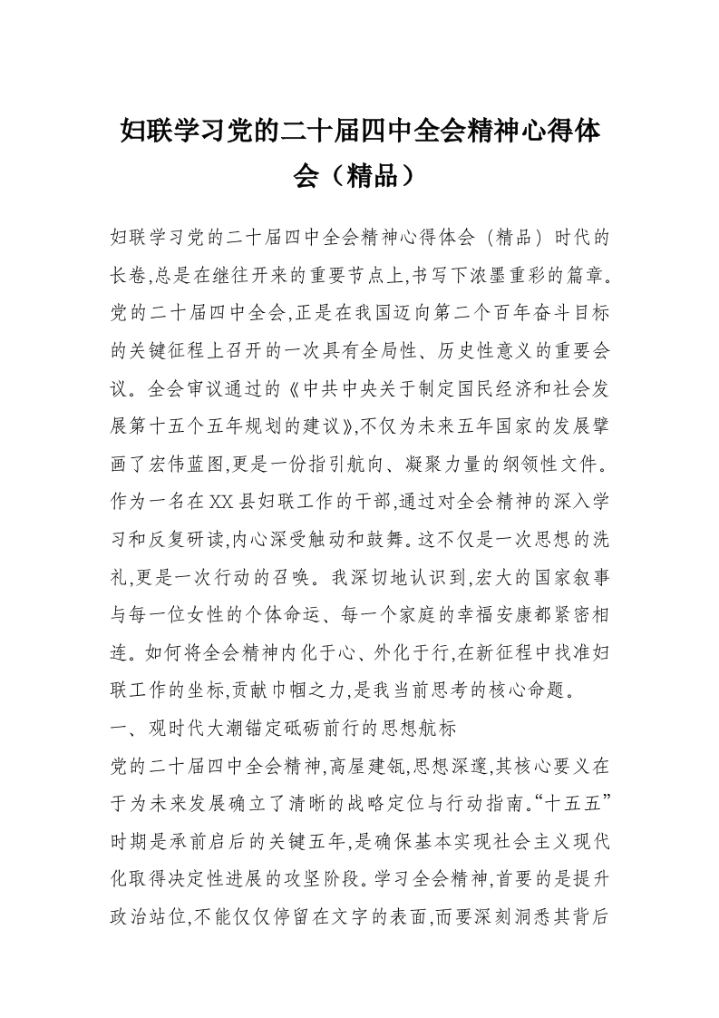 首页写作素材妇联学习党的二十届四中***精神心得体会(精品)