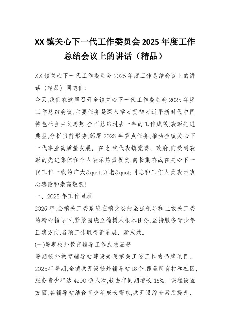 XX镇关心下一代工作委员会2025年度工作总结会议上的讲话(精品)