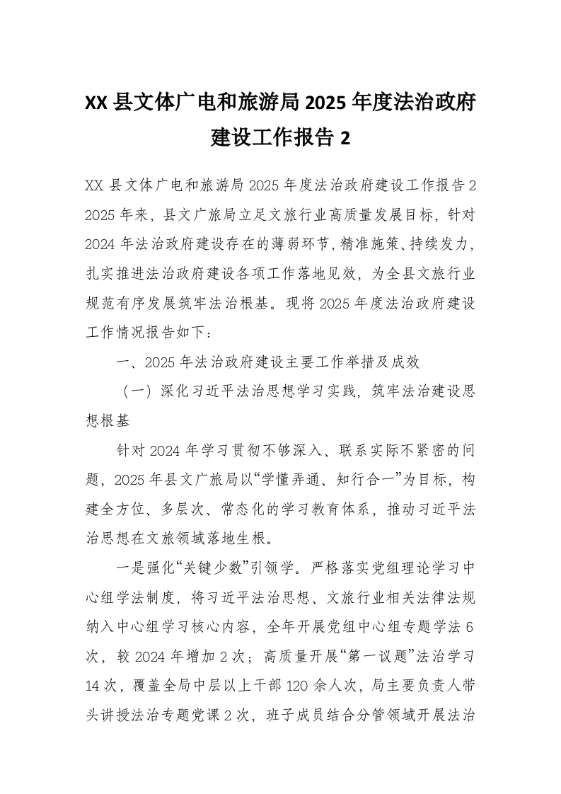 XX县文体广电和旅游局2025年度法治***建设工作报告2