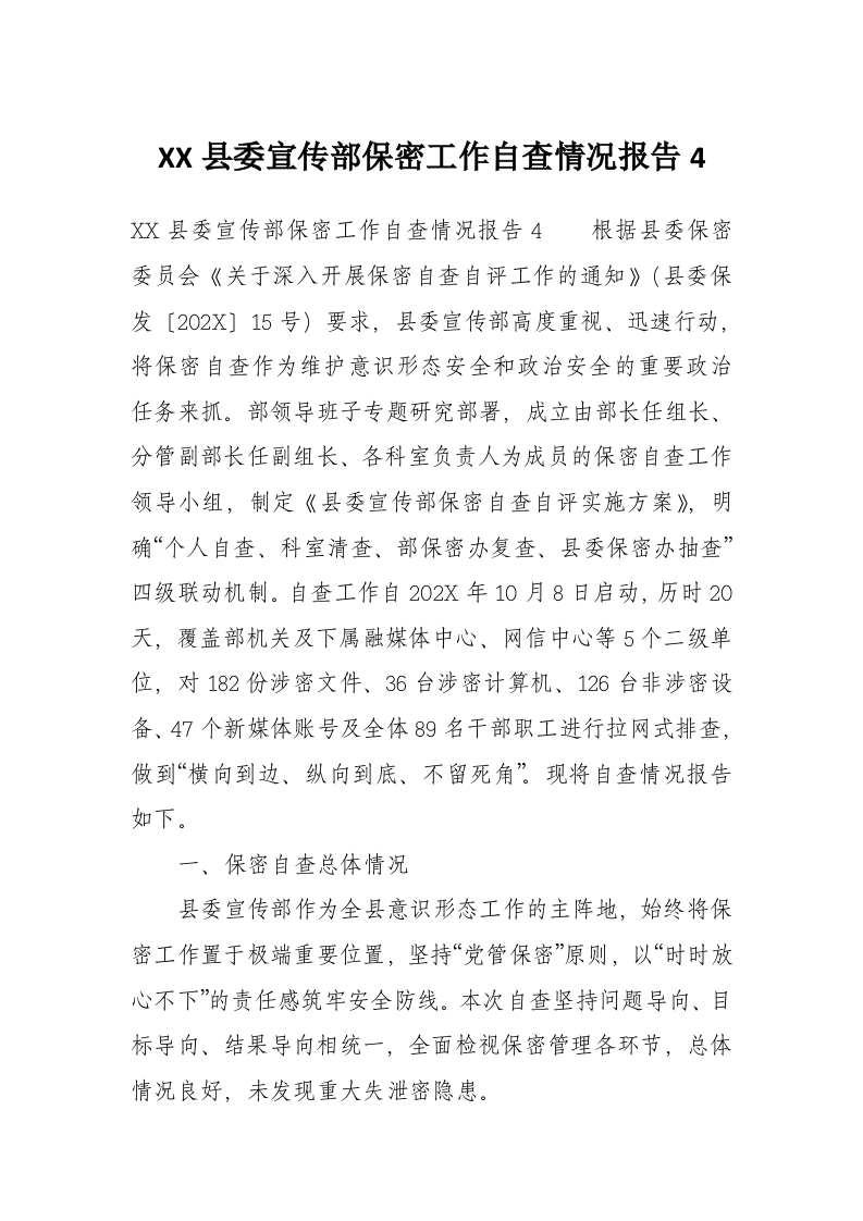 首页写作素材XX县委宣传部保密工作自查情况报告4