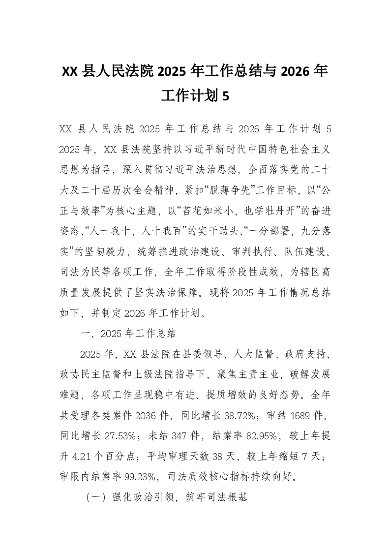 首页写作素材XX县人民法院2025年工作总结与2026年工作计划5