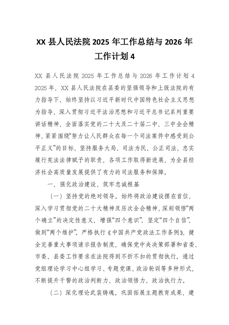 首页写作素材XX县人民法院2025年工作总结与2026年工作计划4