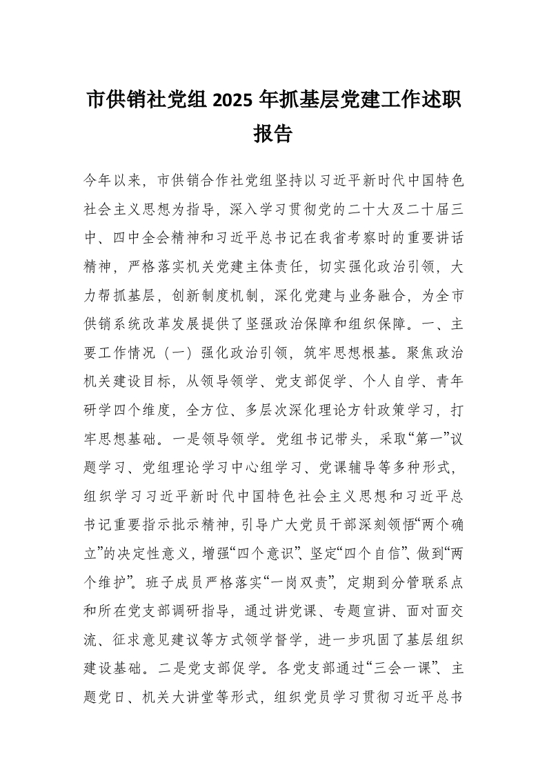 首页写作素材市供销社党组2025年抓基层党建工作述职报告