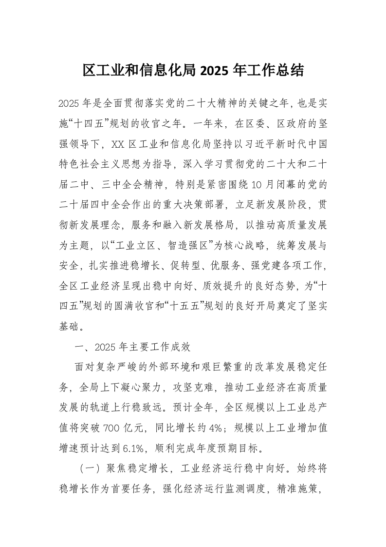 区工业和信息化局2025年工作总结