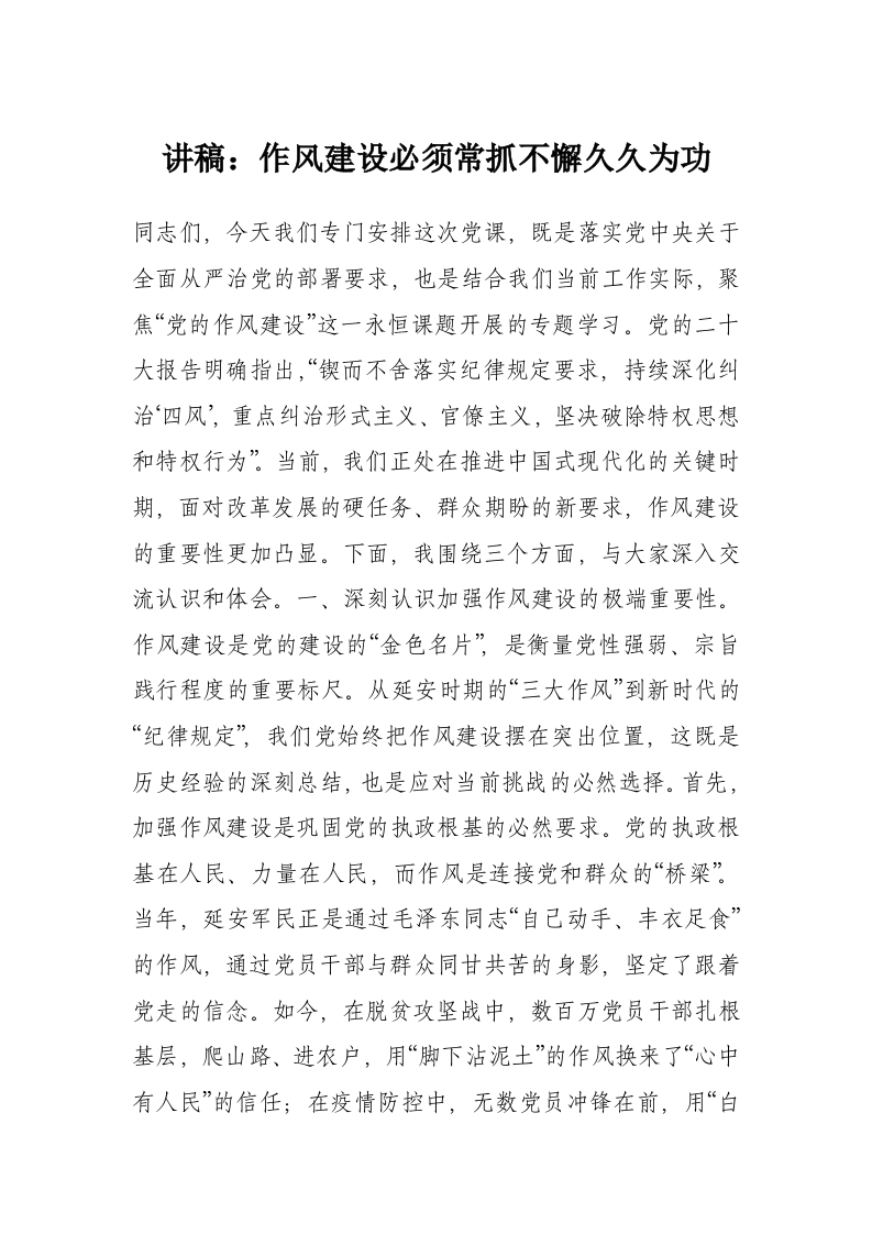首页写作素材讲稿:作风建设必须常抓不懈久久为功