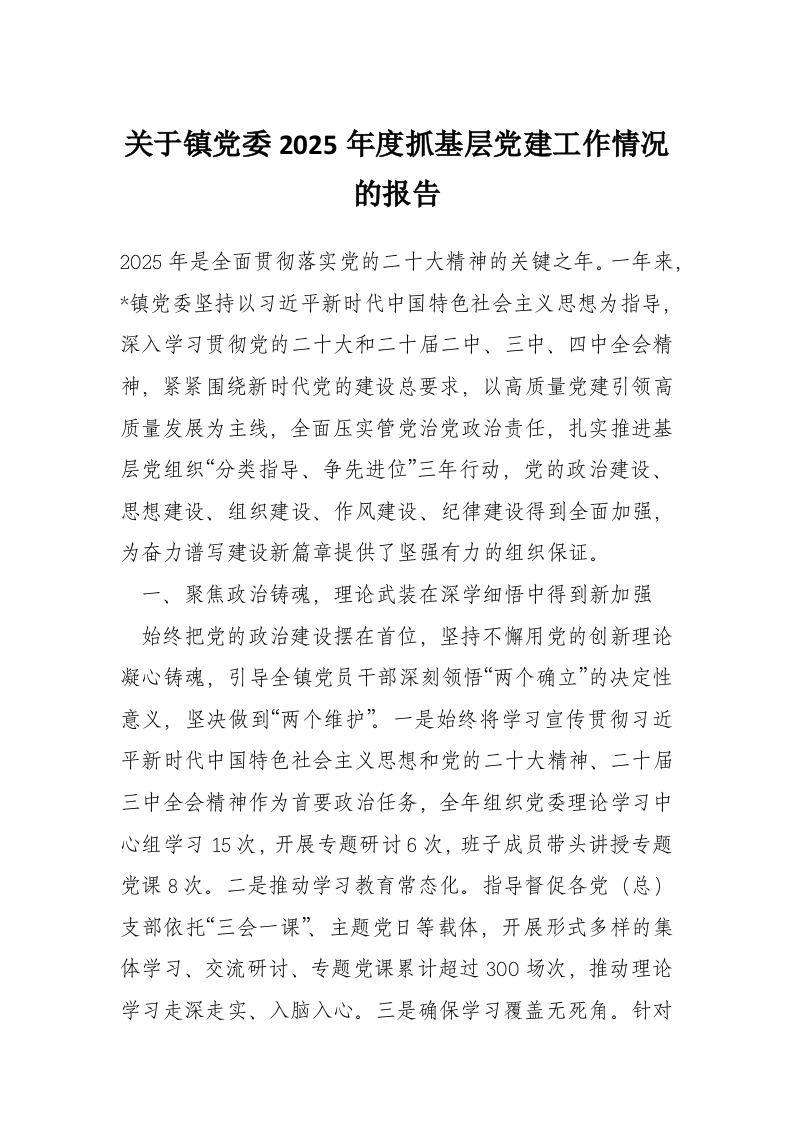 首页写作素材关于镇党委2025年度抓基层党建工作情况的报告