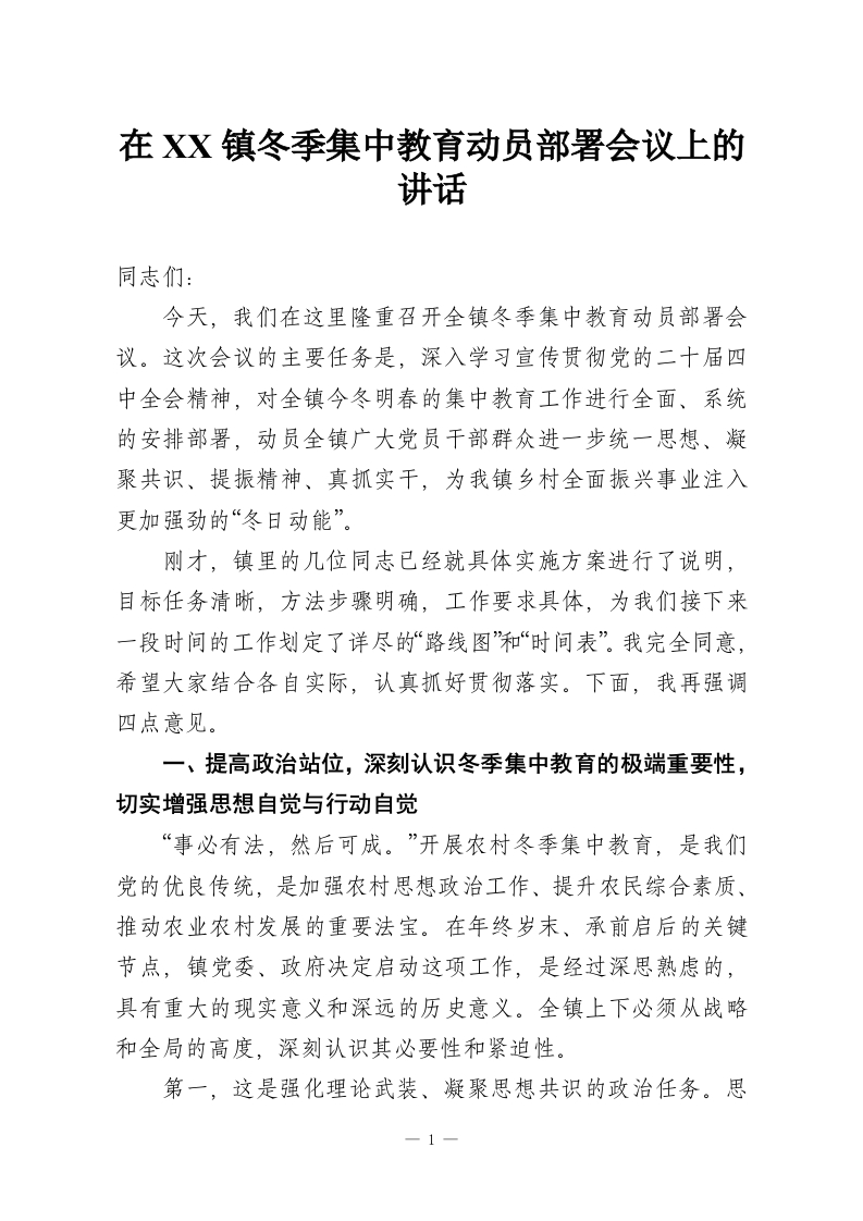首页材料汇编在XX镇冬季集中教育动员部署会议上的讲话