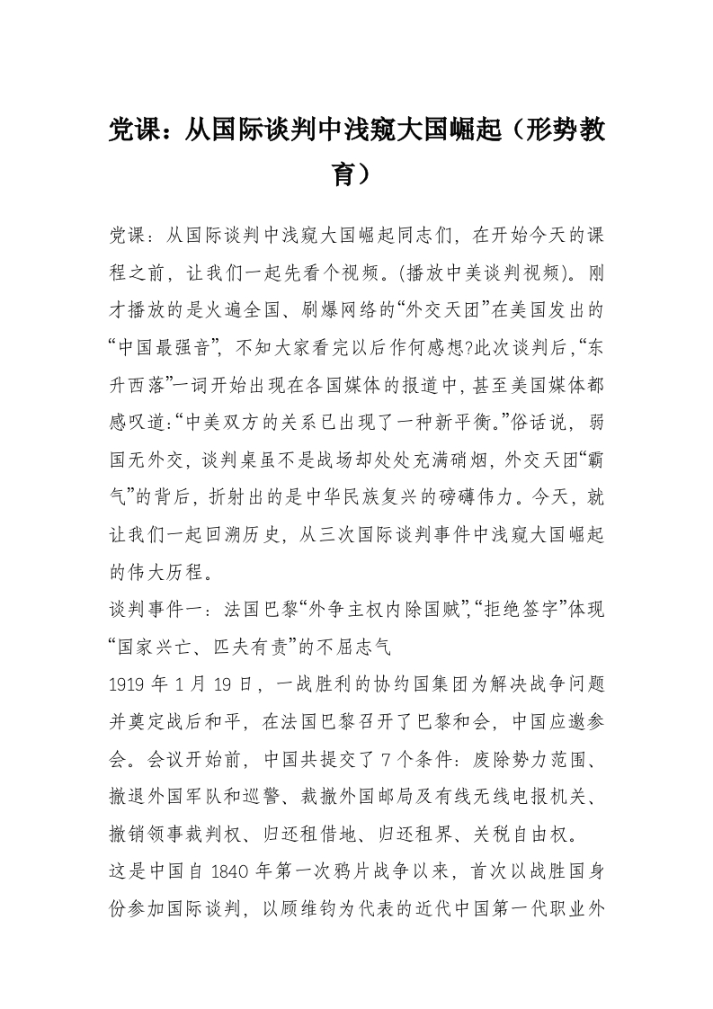 党课:从国际谈判中浅窥大国崛起(形势教育)