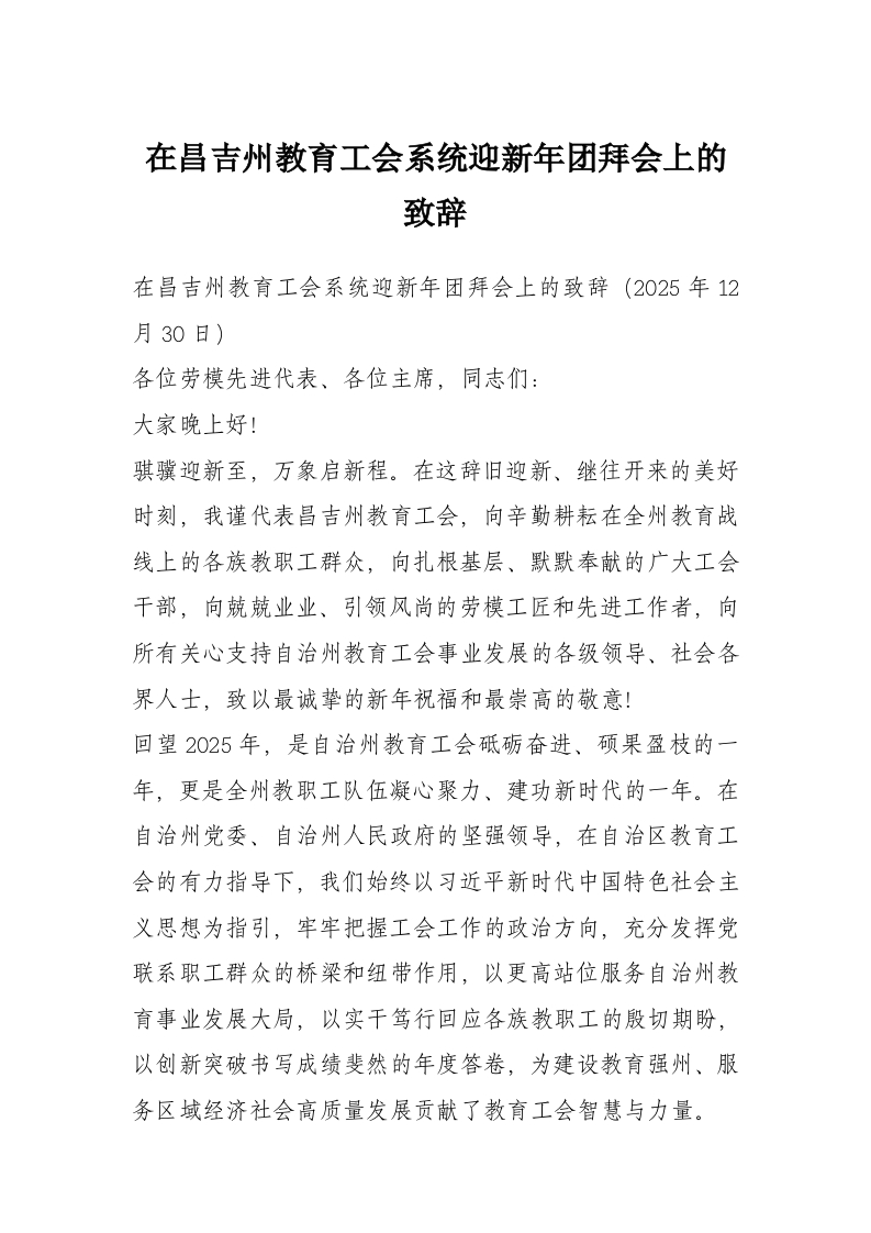 首页工作文档在昌吉州教育工会系统迎新年团拜会上的致辞