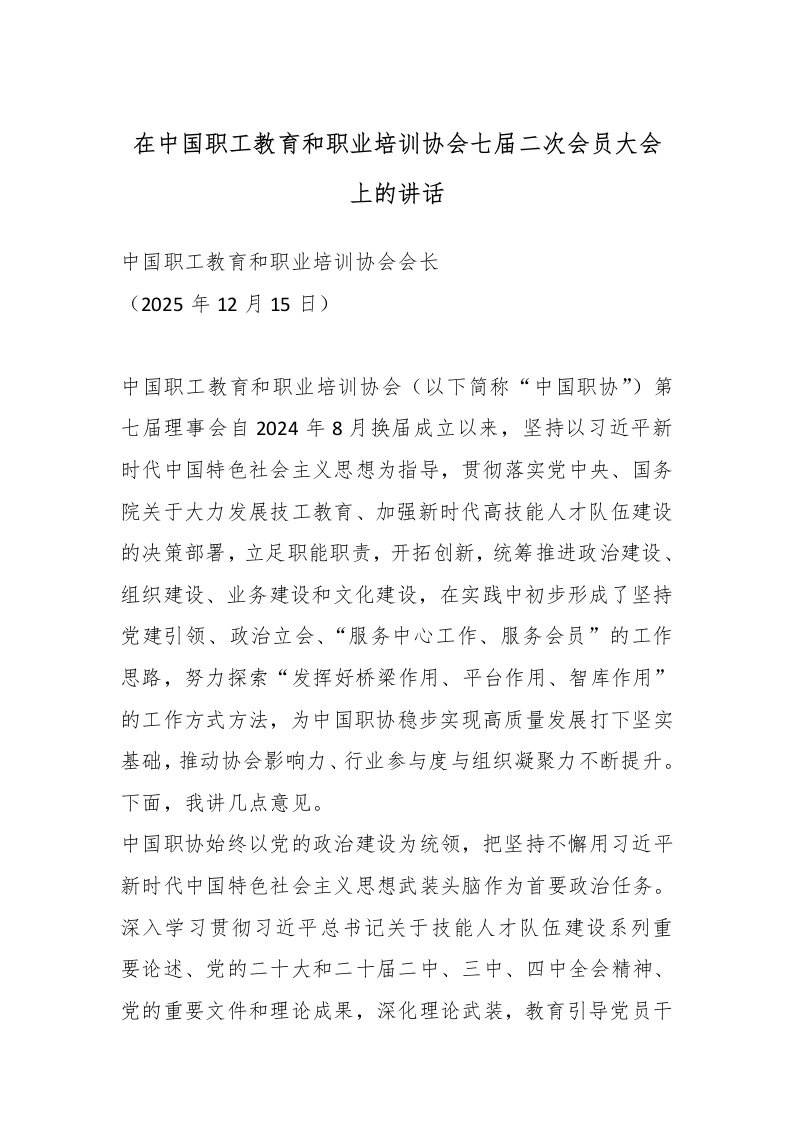 在中国职工教育和职业培训协会七届二次会员大会上的讲话_副本