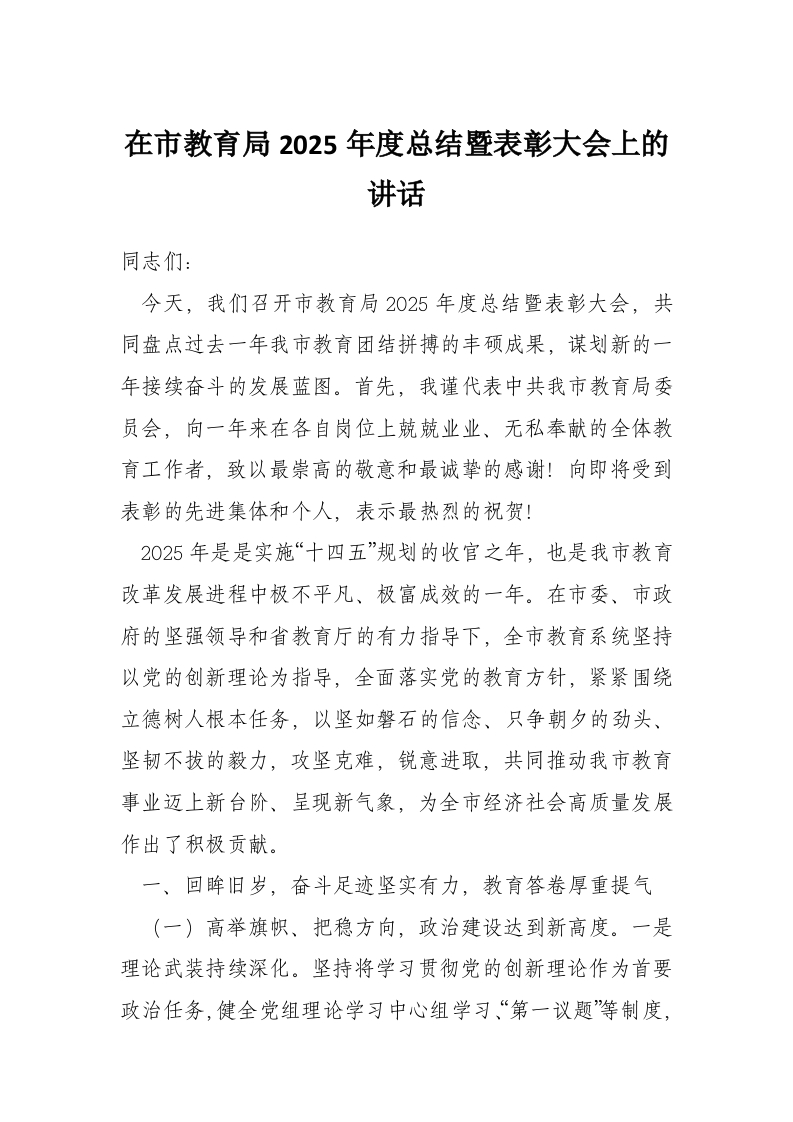 首页工作文档在市教育局2025年度总结暨表彰大会上的讲话