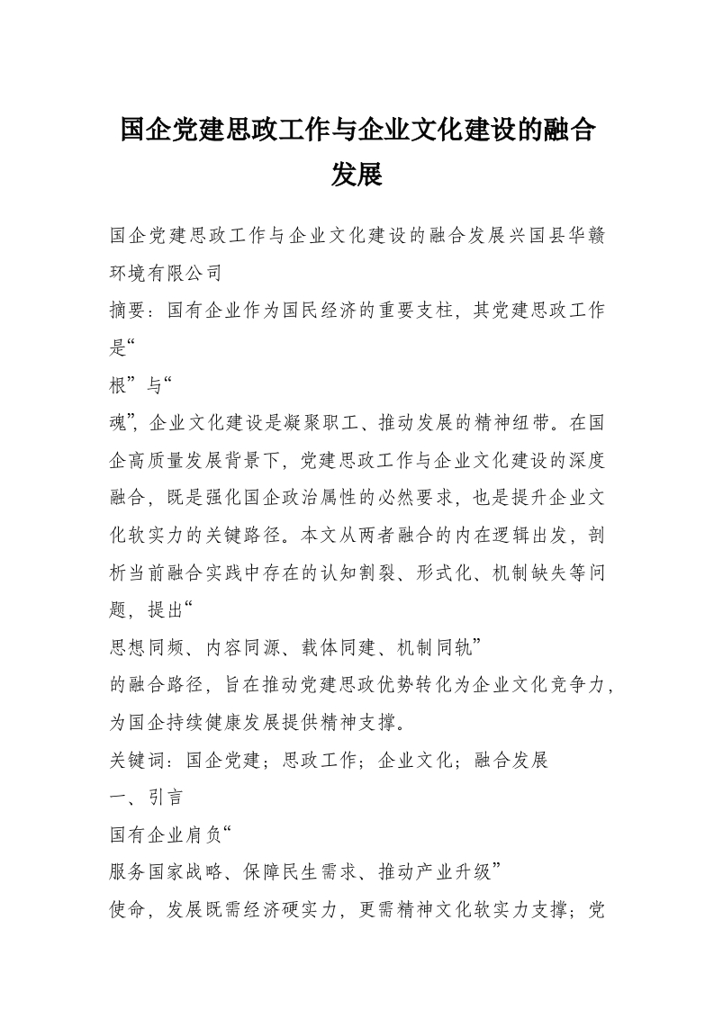 首页写作素材国企党建思政工作与企业文化建设的融合发展