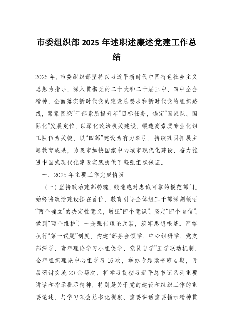 首页材料汇编市委组织部2025年述职述廉述党建工作总结