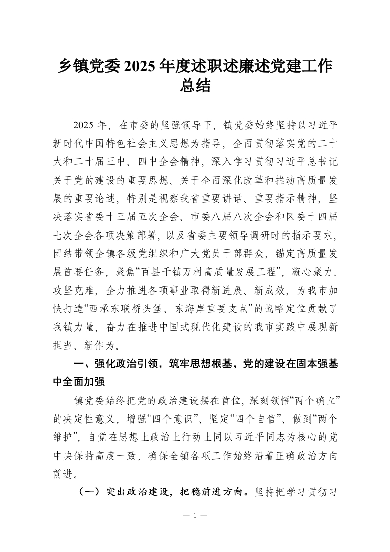乡镇党委2025年度述职述廉述党建工作总结_副本