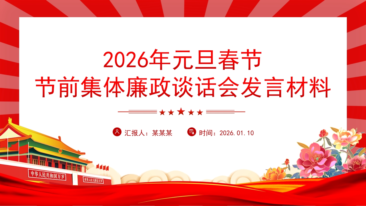 首页PPT模板元旦春节节前集体廉政谈话会发言材料PPT模板下载