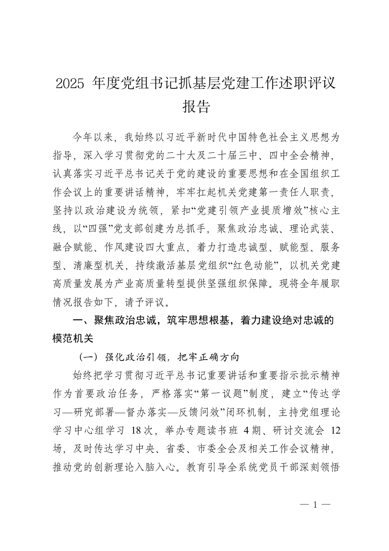 2025年度党组书记抓基层党建工作述职评议报告